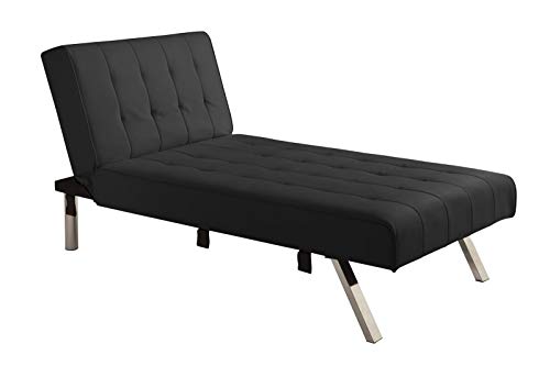 DHP Emily Linen Chaise Lounger, Stylish Design with Chrome Legs, Black