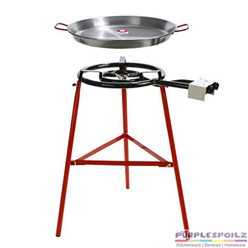 Garcima Tabarca Paella Pan Set with Burner, 20 Inch Carbon Steel Outdoor Pan and Reinforced Legs Imported from Spain (14 Servings)