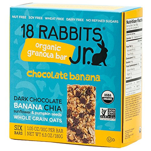 18 Rabbits Jr. Organic Gluten Free Granola Bar, Chocolate Banana, 6-Count Box