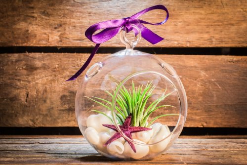 Hinterland Trading Air Plant Tillandsia Purple Starfish Seashell Glass Hanging Terrarium Kit Beautiful Houseplant