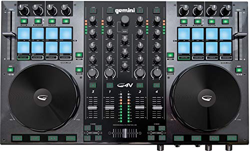 Gemini GV Series G4V Professional Audio 4-Channel MIDI Mappable Virtual DJ Controller with Touch Sensitive Jog Wheel and LED Monitor