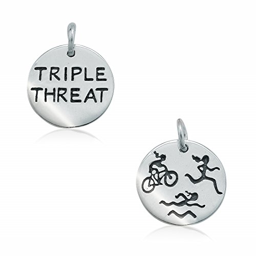 Lift Your Sole 5/8" Sterling Silver Swim Bike Run Figures Triple Threat Double Sided Round Charm