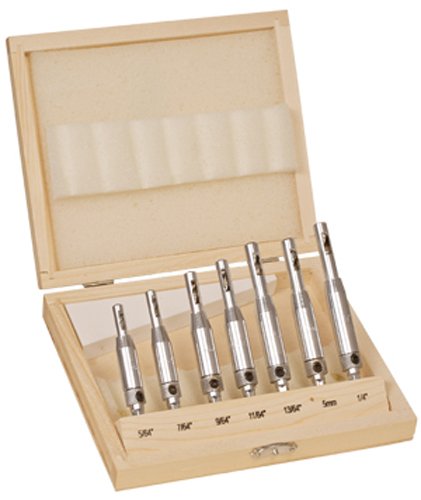 7 Pc High Speed Steel HSS Drill Bit Set Self Centering Hinge Door Cabinet in Wood Case Sizes 5/64 to 1/4"