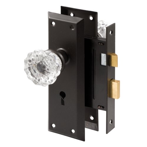 Prime-Line E 2497 Mortise Keyed Lock Set with Glass Knob – Perfect for Replacing Antique Lock Sets and More, Fits Doors with 2-3/8" Backset