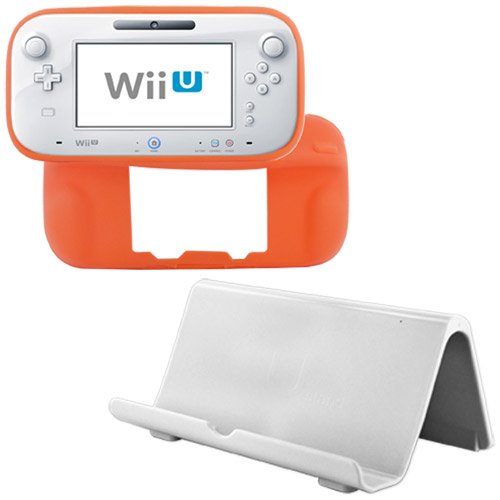 Skque® White Durable Gamepad Console Vertical Stand Dock + Orange Soft Silicone Skin Back Case Cover(for Nintendo Wii U Gamepad Remote Controller) for Nintendo Wii U