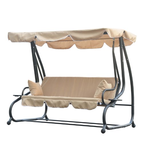 Outsunny Covered Outdoor Porch Swing/Bed with Frame, Sand