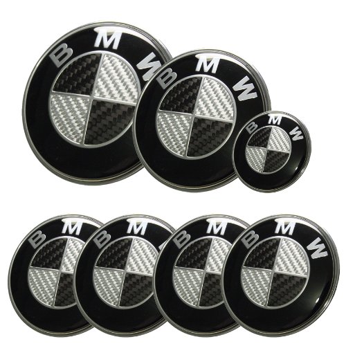 Afauto 7pcs BMW Black/Silver Carbon Fiber Style Emblem Logo Badge Set 73/82mm