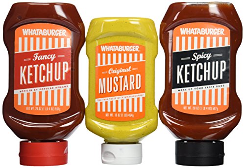 Whataburger Condiments (Pack of 3) (Trio Sampler Pack 1-Mustard 16oz, 1-Original and 1-Spicy Ketchup 20oz ea.)