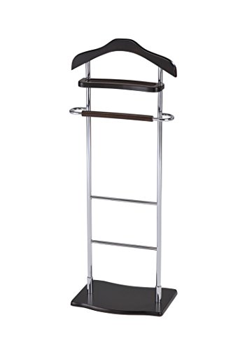 InRoom Designs CH-4181 Kings Brand Chrome/Walnut Finish Wood & Metal Suit Valet Rack Stand Organizer,