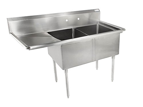 John Boos E Series Stainless Steel Sink, 12" Deep Bowl, 2 Compartment, 18" Left Hand Side Drainboard, 56-1/2" Length x 23-1/2" Width
