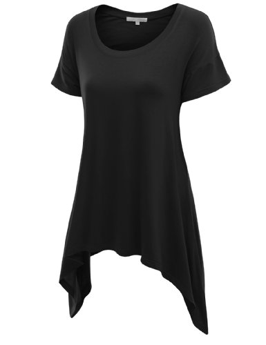Doublju Basic Short Sleeve Long Asymmetrical Tunic Tops for Women with Plus Size Black 2XL
