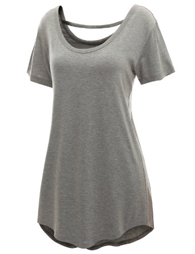 Doublju Womens Basic Comfy Short Sleeve Oversized Long Tunic Top MELANGEGRAY 3XL