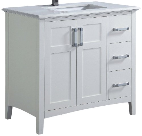 Simpli Home NL-WINSTON-WH-36-2A Winston 36 inch Contemporary Bath Vanity in Soft White with Bombay White Engineered Quartz Marble Top