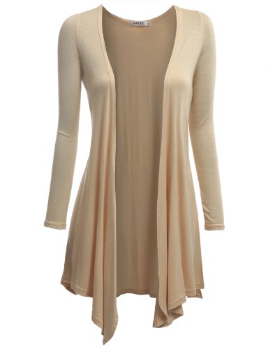 Doublju Womens Long Sleeve Draped Open Front Cardigan Beige 2XL