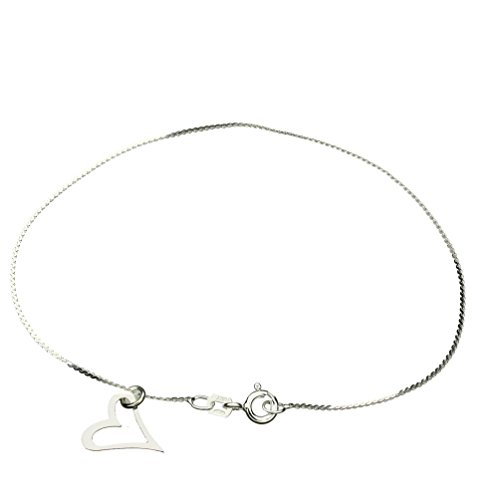 Sterling Silver Heart Charm Serpentine Nickel Free Chain Bracelet Italy, 7.5"