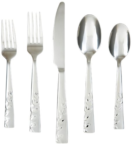 Cambridge Silversmiths 268320R Blossom Sand 20-Piece Flatware Silverware Set, Service for 4, Stainless Steel, Includes Forks/Knives/Spoons, Brushed Finish