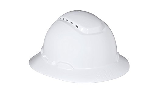 3M Full Brim Hard Hat H-801V, 4-Point Ratchet Suspension, Vented, White