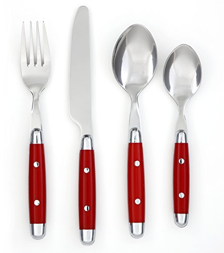 Cambridge Silversmiths Jubilee Red 16-Piece Flatware Silverware Set, Service for 4, Includes Forks/Spoons/Knives