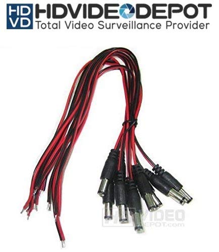HDVD 10 Pack DC Power Male Pigtail Connectors 2.1 x 5.5mm Copper 10 inch Length