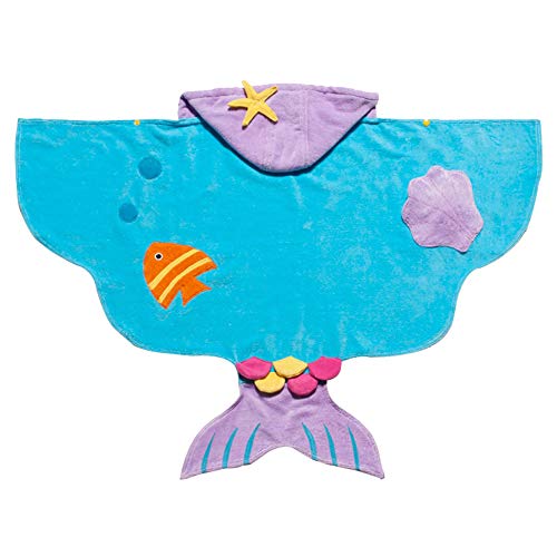 Kidorable Blue Mermaid All-Cotton Hooded Towel for Girls with Fun Fish Tail and Shells