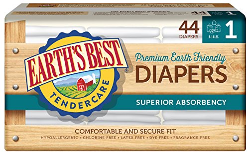 Earth's Best TenderCare Chlorine-Free Disposable Baby Diapers, Size 1 (8-14 lbs), 44 Count