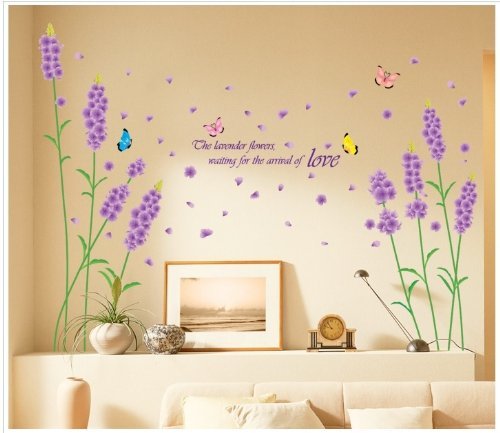 Beautiful Large Long Stem Lavender Flowers with Butterflies Waiting for the Arrival of Love Wall Decals