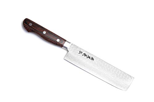 Yoshihiro VG-10 16 Layer Hammered Damascus Stainless Steel Nakiri Vegetable Knife (6.5'' (165mm))