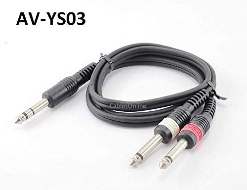3ft 1/4" TRS Stereo Male Plug to 2 1/4" Ts Mono Plug Cable