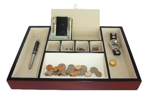 Cherry Wood Rosewood Valet Tray Desk Dresser Drawer Coin Case Catch-all for Keys, Phone, Jewelry, Watches, and Accessories