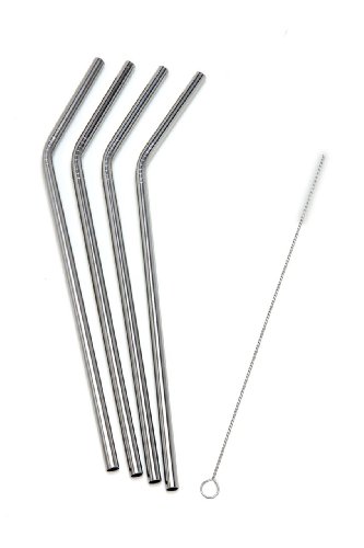 Epica Stainless Steel Drinking Straws, Set of 4- Free Cleaning Brush Included