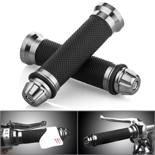 Motorcycle Gunmetal Rubber Hand Grip For 7/8" 22mm Handlebar Street Sport Dirt Bike with Billet Aluminum Bar End Cap