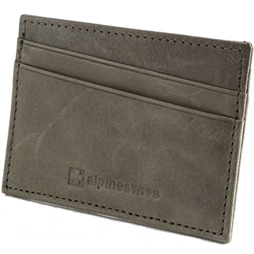 alpine swiss Men's Front Pocket Wallet Minimalist Super Thin 5 Card Genuine Leather, Gray, One Size