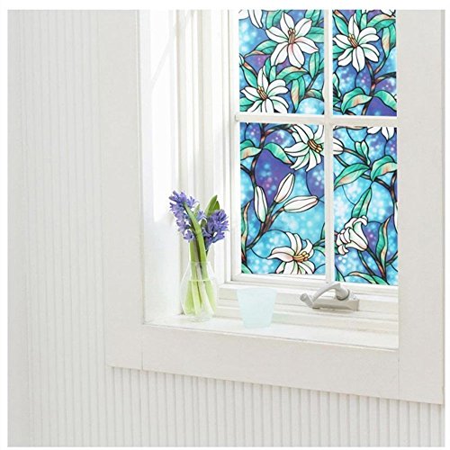fancy-fix Decorative Window Film Vinyl No Glue Privacy Film Static Cling Stained Glass for kitchen Bathroom living room 17.7in in 59in