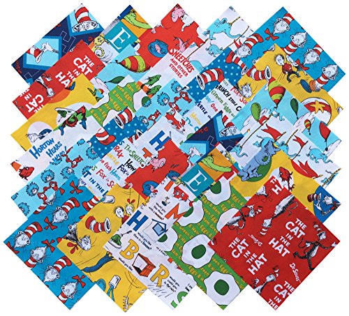 Robert Kaufman DR SEUSS FAVORITES RETURNS Precut 6.5-inch Cotton Fabric Quilting Squares Charm Pack Assortment