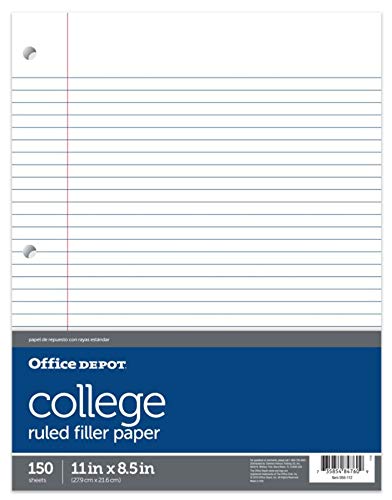 Office Depot Notebook Filler Paper, College-Ruled, 8 1/2in. x 11in, 3-Hole Punched, White, Pack of 150, 09257OD