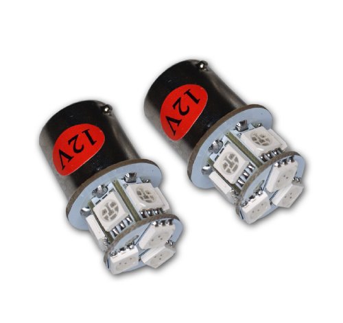 TuningPros LEDRS-1156-RS9 Rear Signal LED Light Bulbs 1156, 9 SMD LED Red 2-pc Set