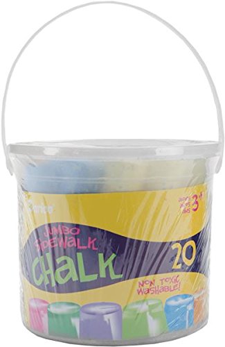 Darice Jumbo Sidewalk Chalk, Assorted Colors (20pc) – Bring Artwork to Life Outside – Sized for Small Hands – Reusable Storage Bucket – Non-Toxic, Washable – Great Screen-Free Activity for Kids