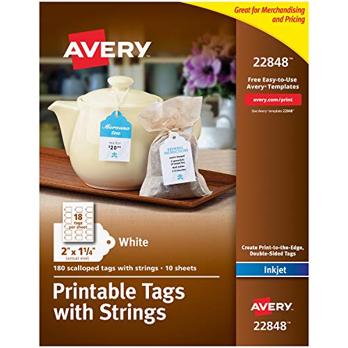 Avery Scalloped Printable Tags for Inkjet Printers Only, Tags With Strings, 2" x 1.25", 180 Tags (22848)