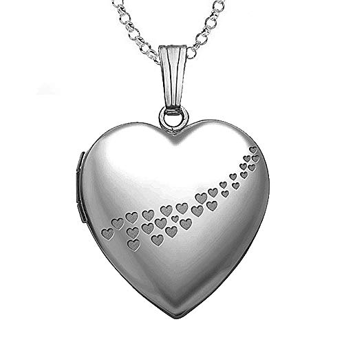 PicturesOnGold.com Sterling Silver Cascade of Hearts Heart Locket Pendant Necklace - 3/4 Inch X 3/4 Inch