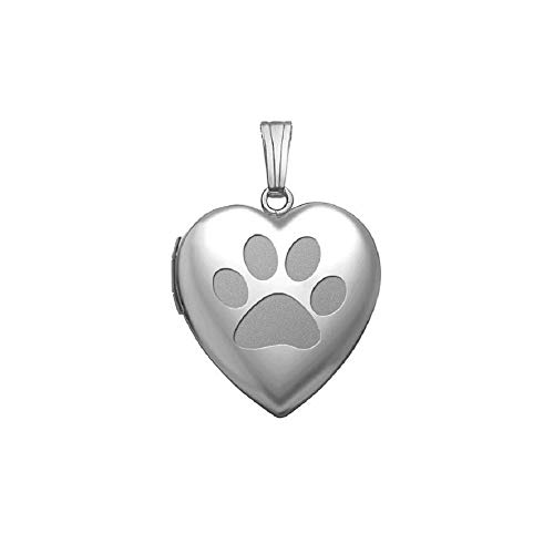 PicturesOnGold.com Sterling Silver Dog Paw Heart Locket Pendant Necklace - 3/4 Inch X 3/4 Inch