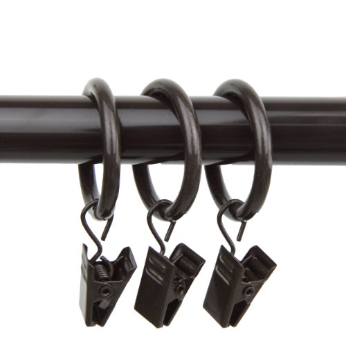 Rod Desyne 10 Count 1-Inch Curtain Rings with Clip for Windows, Cocoa
