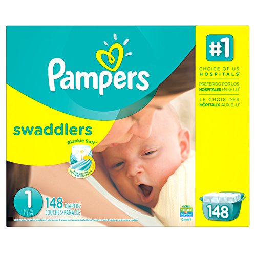 Pampers Swaddlers Disposable Diapers Newborn Size 1 (8-14 lb), 148 Count, GIANT (Packaging May Vary)