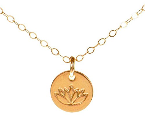 Efy Tal Jewelry Lotus Necklace, Tiny Gold Filled Yoga Pendant on 14k Gold Filled Chain, Dainty Zen Flower Charm