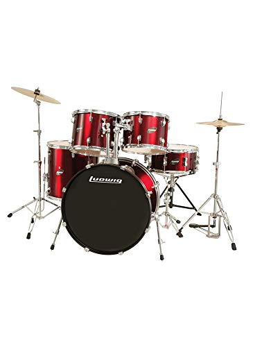 Ludwig Accent Drive 5-Pc Drum Set, Red Foil - Includes: Hardware, Throne, Pedal, Cymbals, Sticks & Drumheads