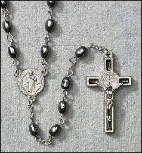 Black St. Benedict Oval Black Rosary. 5 X 7" Oval Bead Size: 20" L, 1 1⁄2" Crucifix. Lay Catholics Are Not Permitted to Perform Exorcisms but They Can Use the Saint Benedict Medal, Holy Water, the Crucifix, and Other Sacramentals to Ward Off Evil. Catho