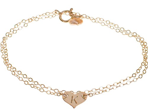 EFYTAL Custom Sterling Silver Dainty Heart Initial Bracelet - Small Delicate Monogrammed Heart