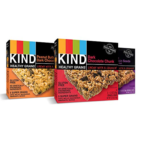 KIND Healthy Grains Granola Bars, Variety Pack, Dark Chocolate Chunk, Peanut Butter Dark Chocolate, Maple Pumpkin Seeds with Sea Salt, Gluten Free, 1.2 oz, 15 Count
