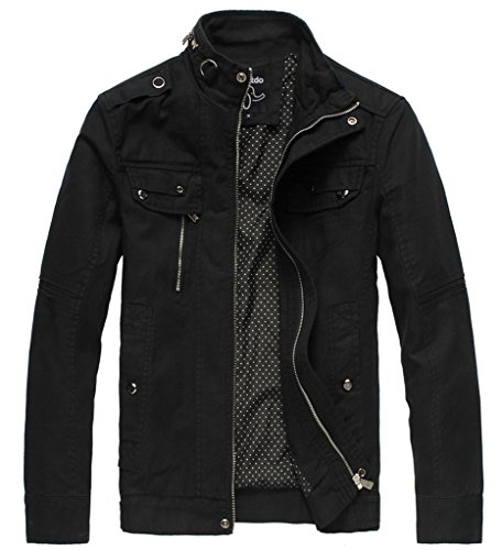 Wantdo Men's Cotton Stand Collar Lightweight Front Zip Jacket Black,Medium
