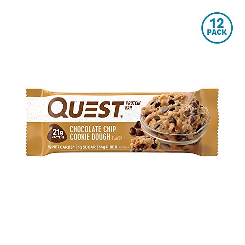Quest Nutrition Chocolate Chip Cookie Dough Protein Bar, High Protein, Low Carb, Gluten Free, Soy Free, Keto Friendly, 12 Count