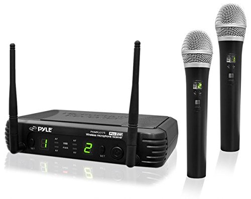 Professional Wireless Microphone System - Dual UHF Band, Wireless, Handheld, 2 MICS With 8 Selectable Frequency Channels, Independent Volume Controls, AF & RF Signal Indicators - Pyle PDWM3375